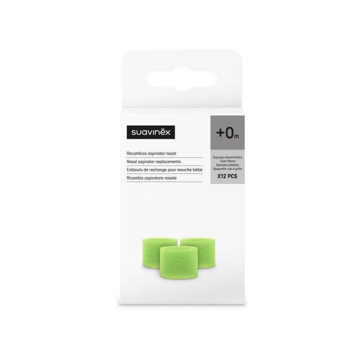 Los Recambios aspirador nasal SUAVINEX están pensados para un solo uso, asegurando siempre las condiciones óptimas de higiene. Aunque el color de cada esponja puede variar según el tiempo o las condiciones de almacenamiento, la funcionalidad del producto se mantiene intacta.